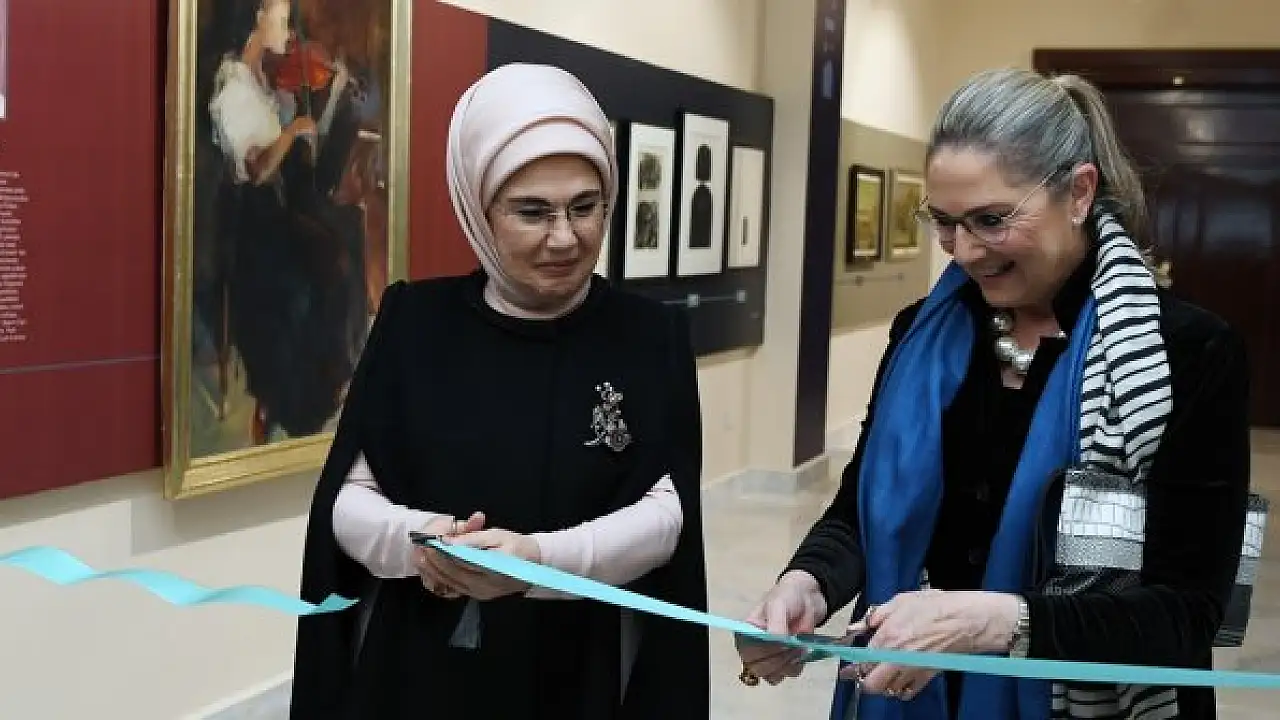 Cumhurbaşkanı Recep Tayyip Erdoğan'ın eşi Emine Erdoğan ile İsrail Cumhurbaşkanı Isaac Herzog'un eşi Michal Herzog, Ankara Devlet Resim ve Heykel Müzesi'nde sergi açılışı yaptı.