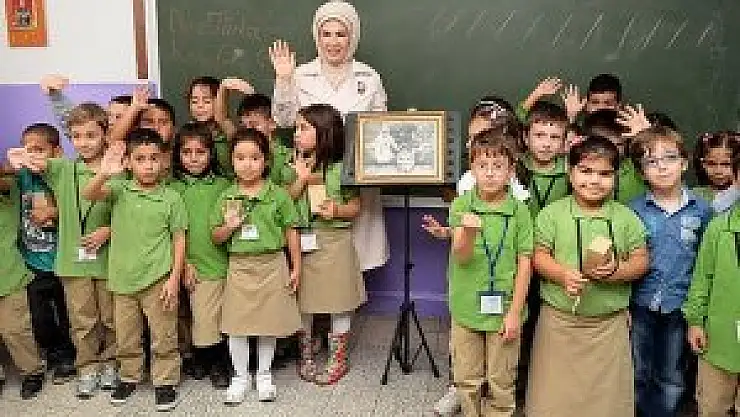 Emine Erdoğan, bu sırada öğrencilerle sohbet etti, sınıf öğretmeni İnan'dan öğrencilere ilişkin bilgi aldı.