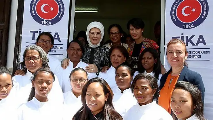 Emine Erdoğan, Madagaskar'da TİKA tarafından hizmete sokulan ve ekipman desteği verilen kadın eğitim merkezinin açılışını gerçekleştirdi.