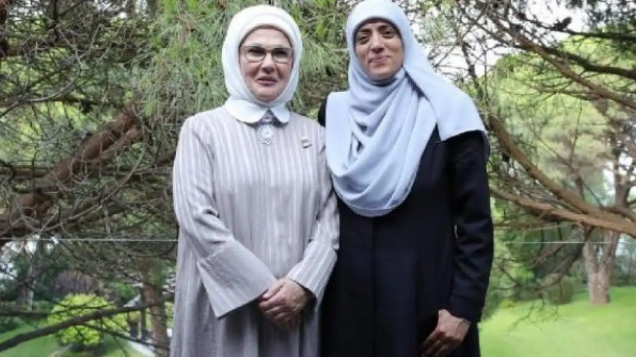 Cumhurbaşkanı Recep Tayyip Erdoğan'ın eşi Emine Erdoğan, Mescid-i Aksa'nın gönüllü muhafızı Hatice Huveys ile İstanbul'daki Huber Köşkü'nde bir araya geldi.