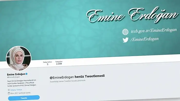 Emine Erdoğan'ın Twitter hesabı, "twitter.com/EmineErdogan" adresinden takip edilebilecek.