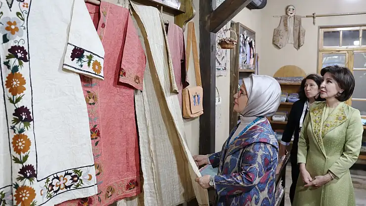Özbekistan ziyaretinde Cumhurbaşkanı Recep Tayyip Erdoğan'a eşlik eden Emine Erdoğan, Semerkant'ta Özbekistan Cumhurbaşkanının eşi Ziroat Mirziyoyeva ile Konigil Kağıt Fabrikası'nı ve Yaşayan Özbek Köyü Müzesi'ni ziyaret etti.