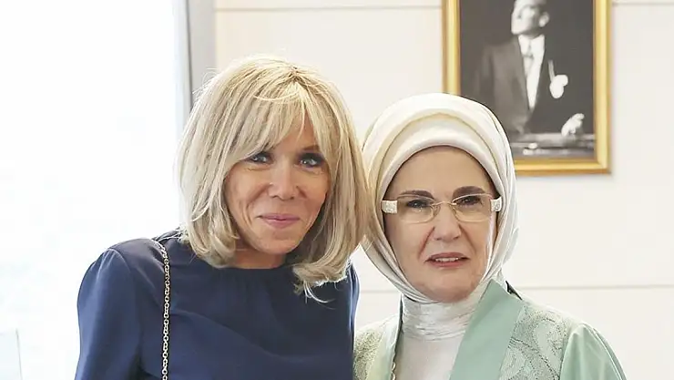 Türkiye Cumhurbaşkanı Recep Tayyip Erdoğan'ın eşi Emine Erdoğan, Fransa Cumhurbaşkanı Emmanuel Macron'un eşi Brigitte Macron ile bir araya geldi.