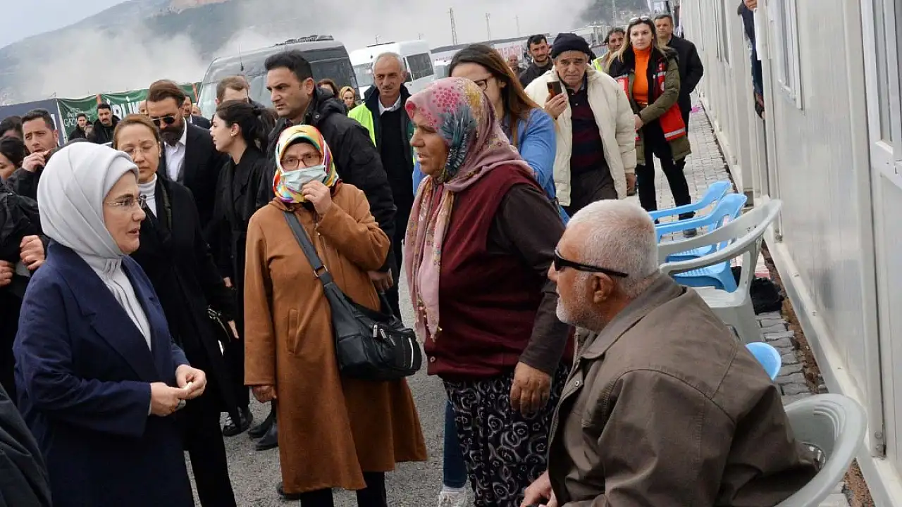 Cumhurbaşkanı Recep Tayyip Erdoğan'ın eşi Emine Erdoğan, depremin vurduğu Gaziantep'in Nurdağı ilçesinde afetzedeleri ziyaret edip, ailelerle görüştü.