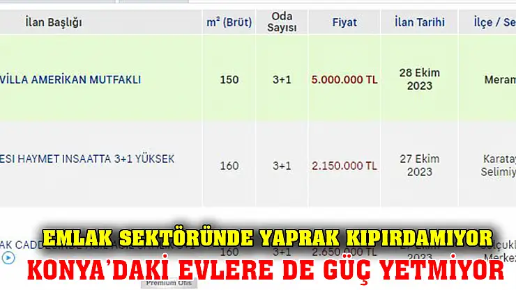 Enflasyondan en çok nasibini alan sektörlerin başında gelen emlak sektöründe yaprak kıpırdamazken, Konya'daki konut fiyatları ise halen dudak uçuklatıyor.