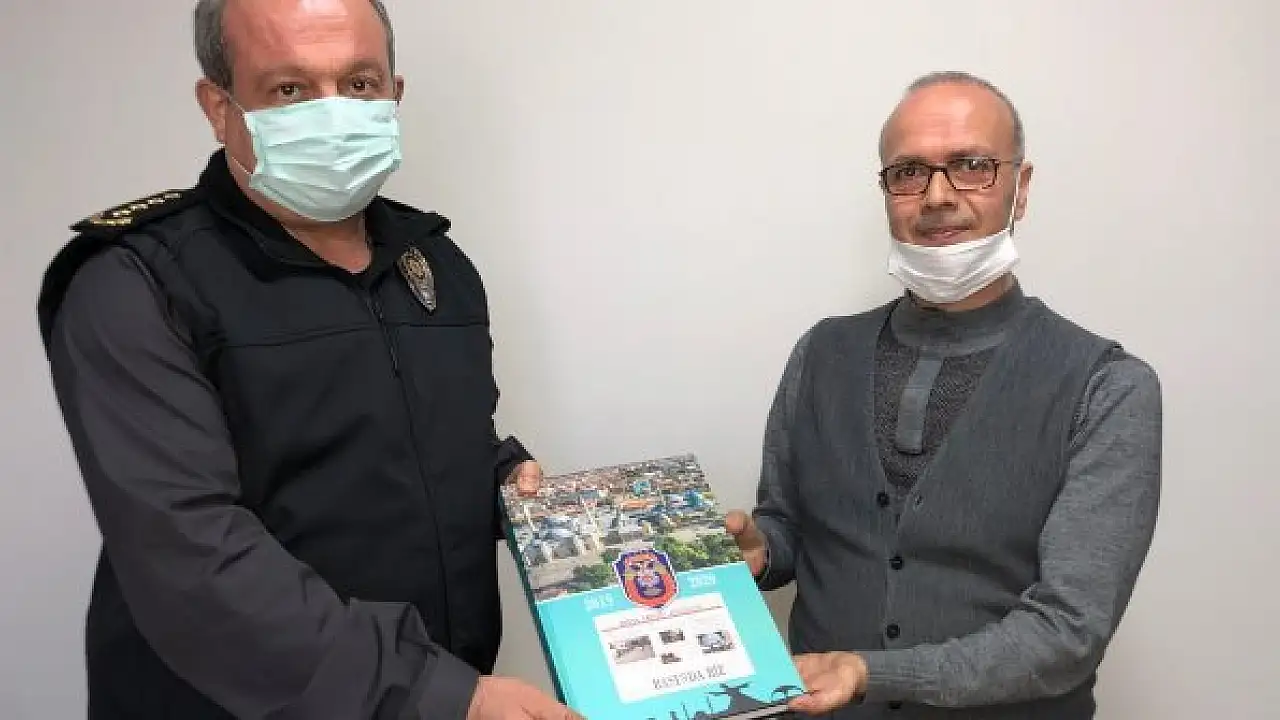 Ziyarette Emniyet Müdürü Mustafa Aydın, İHA Konya Bölge Müdürü Kenan Arvas’a Konya Emniyet Müdürlüğü tarafından hazırlanan “Basında Biz” kitabını hediye etti.