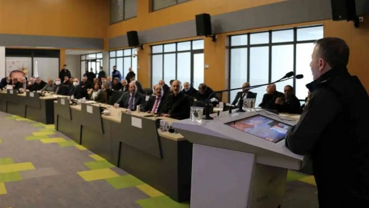 Erzincan Emniyet Müdürü Kenan Kurt, mahalle muhtarları ile toplantı düzenledi.