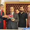 Konya'da gazeteciler, İl Emniyet Müdürü Mevlüt Demir'e başsağlığı ziyaretinde bulunarak Kuran ve Türk bayrağı hediye etti.
