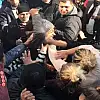 Bu sırada emniyet önünde toplanan protestocular arasında bulunan H.A., 1 yıldır ayrı yaşadığı ve protestoya katıldığı için sinirlendiği eşi E.A.'ya makasla saldırdı.