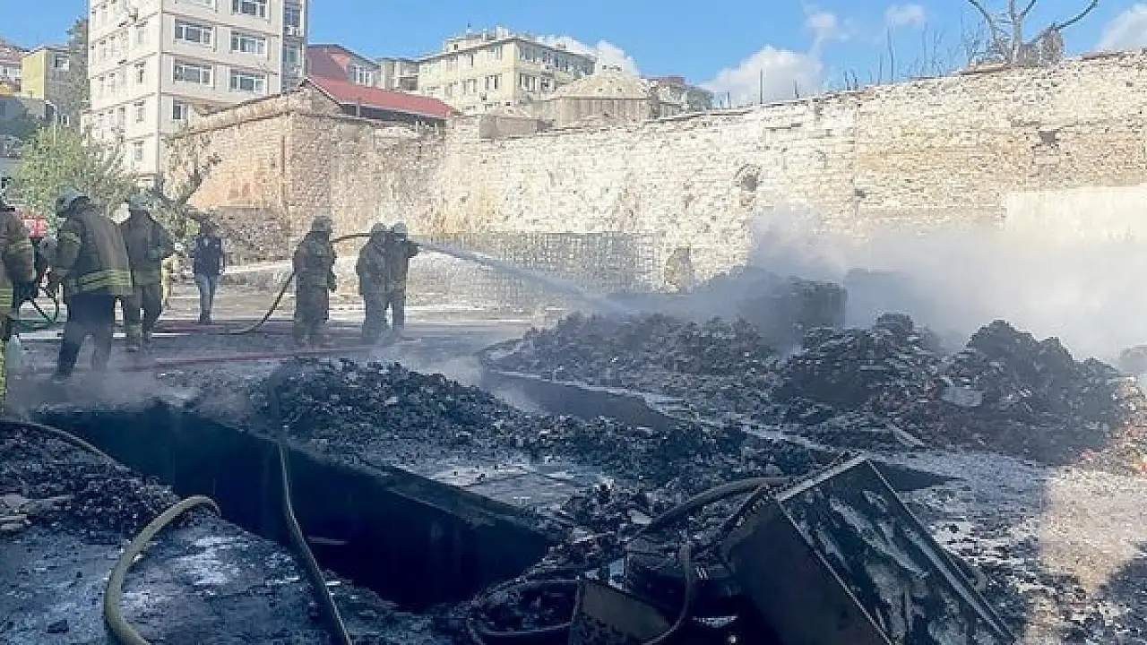 Fatih'te, emniyete ait bir depoda çıkan yangına itfaiye ekipleri müdahale ediyor.