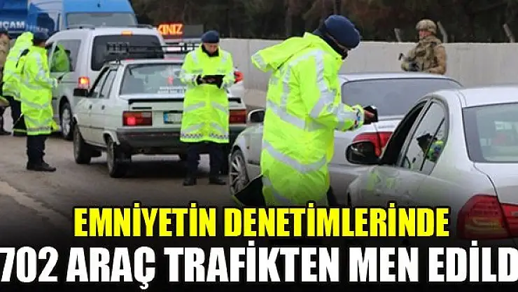 Emniyet birimlerince ülke genelinde gerçekleştirilen denetimlerde 702 araç trafikten men edildi, 22 sürücü belgesi de geçici olarak alındı.