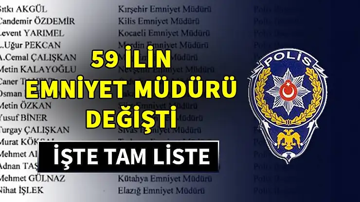 İl Emniyet Müdürleri Kararnamesi, Resmi Gazete'de yayımlandı. Buna göre, 34 İl Emniyet Müdürü merkeze alınırken, 24 İl Emniyet Müdürü ile 2 Daire Başkanının yeri değiştirildi. İşte Emniyetteki yeni görevlendirmelerin tam listesi
