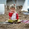 Dondurucu soğukta geceyi sağ-salim atlatan çocuklar, günün ışımasıyla beraber daracık çadırları terk edip dışarıda bulabildikleri bir taş, bir ağaç dalı ya da kırık dökük bir oyuncakla kampın çamurlu zemininde oyalanıyorlar.