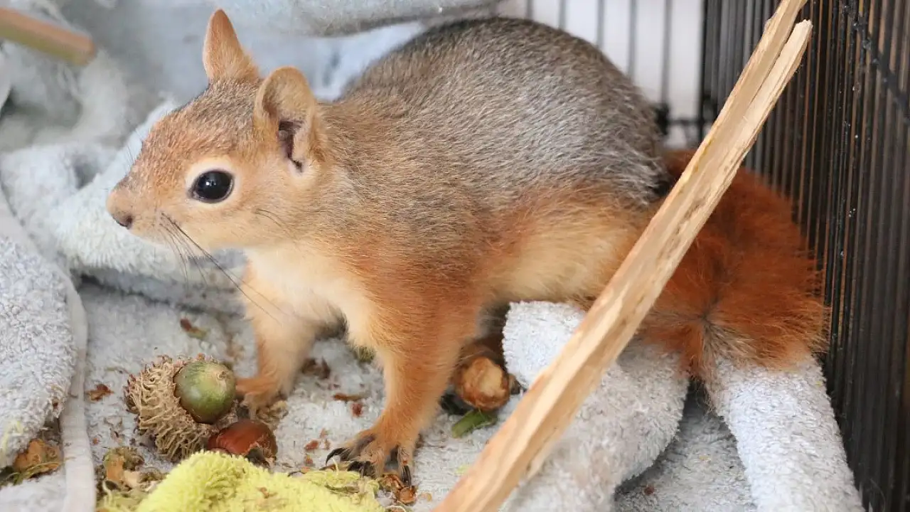 En büyük yangından yaralı kurtulan sincap, doğaya döneceği günü bekliyor