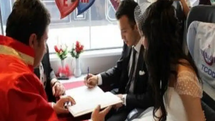Eskişehir'de yaşayan ve Türkiye Lokomotif ve Motor Sanayi A.Ş.'de (Tülomsaş) görev yapan 27 yaşındaki Musab Arıcı ile Esra Koçum (26), Ankara-Eskişehir istikametindeki Yüksek Hızlı Tren'de (YHT) dünyaevine girdi.