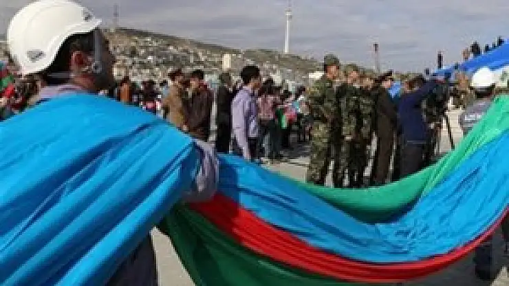 Azerbaycan'ın başkenti Bakü'de, vatandaşların katılımıyla, dünyanın en yüksek ikinci bayrak direğine, Azerbaycan bayrağı çekildi.