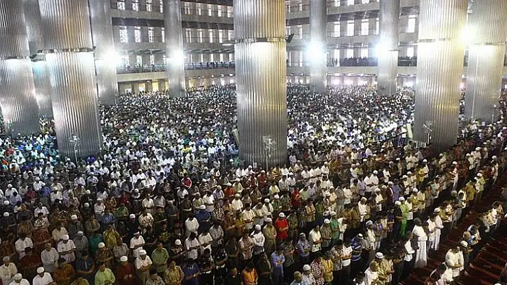 Başkent Cakarta'da bulunan ve 120 bin kapasitesiyle Güneydoğu Asya'nın en büyük camisi olan İstiklal Camisi, cuma namazı kılmak isteyenlerin akın etmesiyle tıklım tıklım doldu.