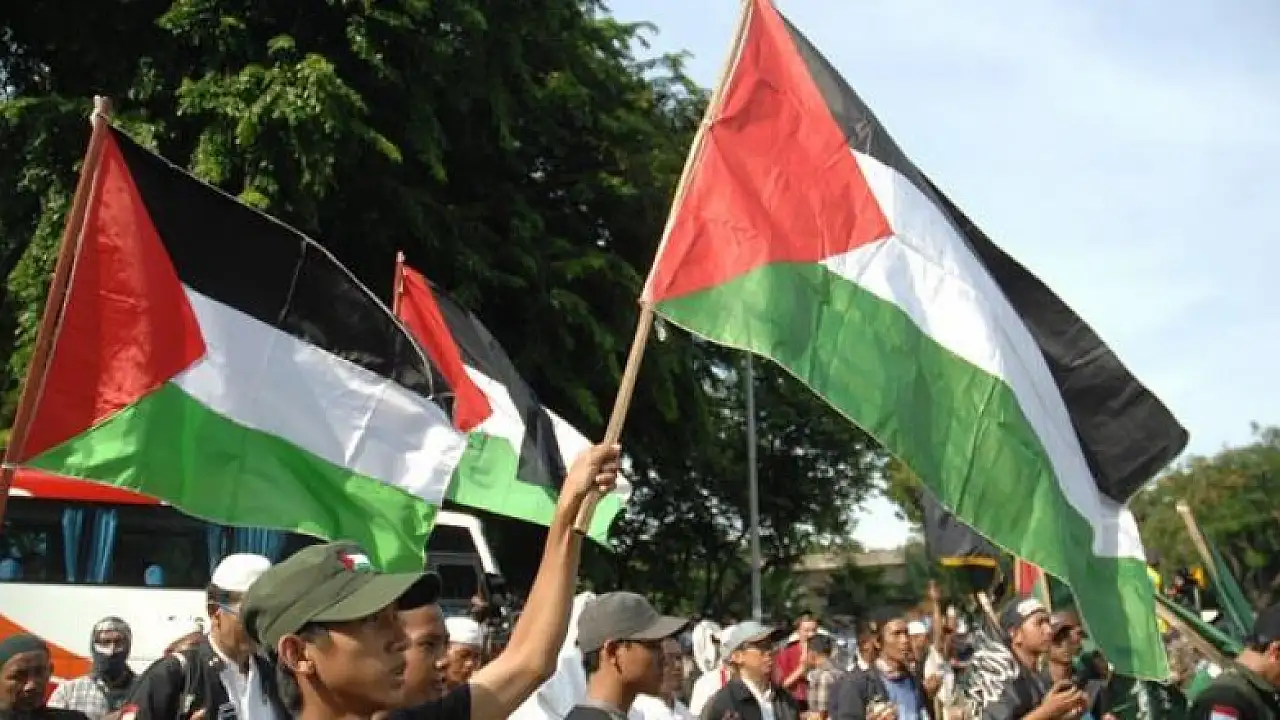 Gösterideki konuşmada, Amerikan mallarını boykot etme çağrısı yapılırken, Kudüs ve Filistin halkı için dua edildi.