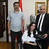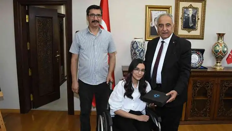 Adıyaman Üniversitesi Rektörü Prof. Dr. Mehmet Turgut, engeline rağmen YKS Sayısal' da Türkiye 126.'sı ve Adıyaman 1.'si, olan Fen Lisesi öğrencisi Seren Esmer'e plaket vererek başarısını kutladı.