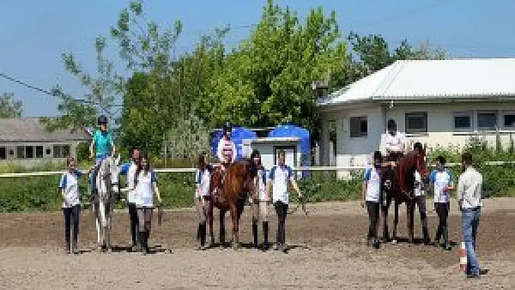 Uludağ Üniversitesi (UÜ) Mennan Pasinli Meslek Yüksekokulu ile Atlı Spor Topluluğunun hayata geçirdiği "Engelsiz Yarınlara Dört Nala" projesine katılan spastik çocuklar, engellerini ata binerek aşmaya çalışıyor.