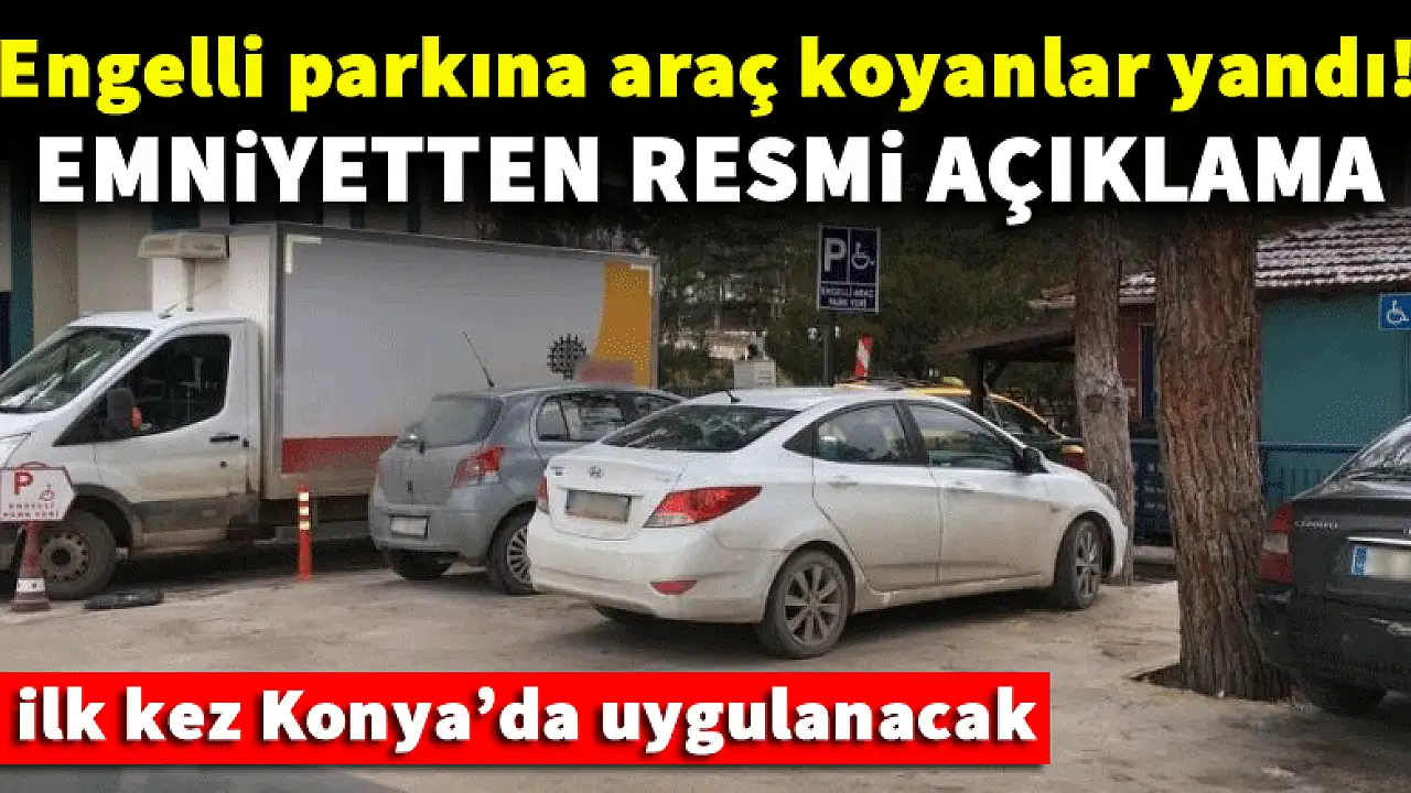 Konya Emniyet Müdürlüğü, hak sahibi olmadan engelli park alanlarına otomobillerini koyan sürücüler için para cezası uygulanacağını açıkladı. Gelen şikayetleri dikkate alan Emniyet, bu konuda başlattığı çalışma neticesinde bir açıklama yayınladı. Açıklamada, Türkiye'de ilk kez Konya'da gerçekleştirilecek uygulama neticesinde hak sahibi olmadan engelli park alanlarına otomobillerini koyan sürücüler için 216 TL İdari Para Cezası uygulanacağı belirtildi.