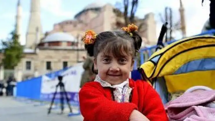 Ayasofya Müzesi önünde Beyazay Derneği adına açıklama yapan Aylin Çiftçi, 29 Ekim münasebetiyle, Suriye'den Türkiye'ye gelen engelli çocuklar ve ailelerine yönelik tarihi yarımada turu düzenlediklerini söyledi.
