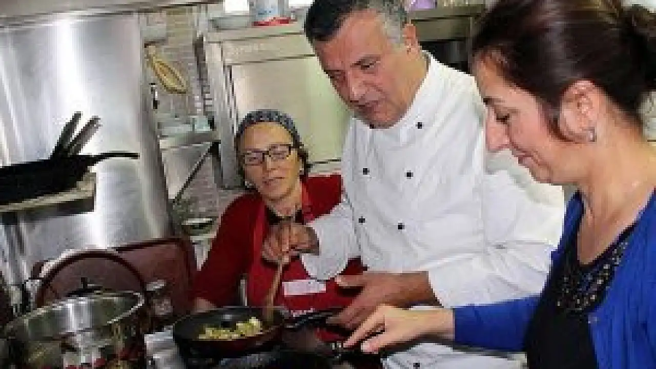 ASTED'in görme engelli Genel Koordinatörü Namık Tuncel'in de katıldığı etkinlikte, resmi dairelerin yetkilileri, Ayvalık'taki restoran, pastane ve otellerin mutfaklarında hünerlerini sergiledi.