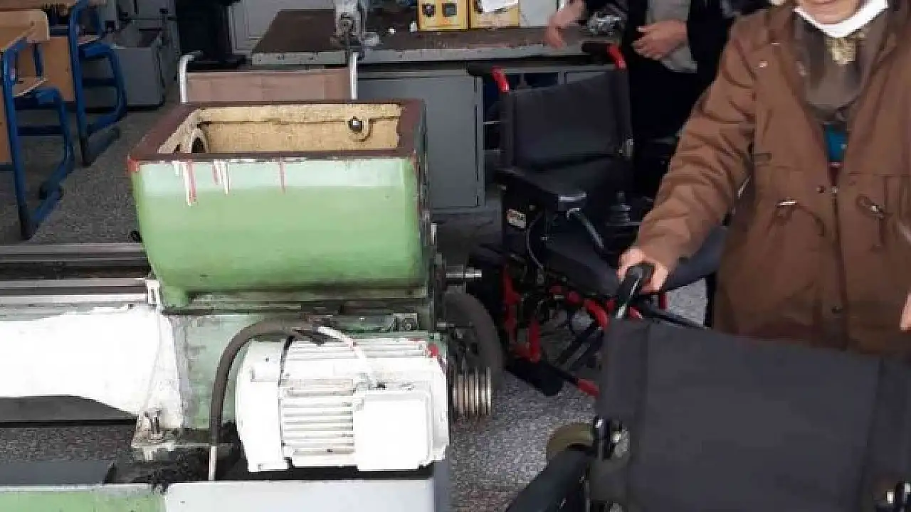 Bilecik'in Bozüyük ilçesinde Engelliler Dayanışma Derneği üyelerinin arızalanan tekerlekli sandalyeleri Mesleki ve Teknik Anadolu Lisesi atölyelerinde teknik öğretmenlerce ücretsiz olarak yapılıyor.