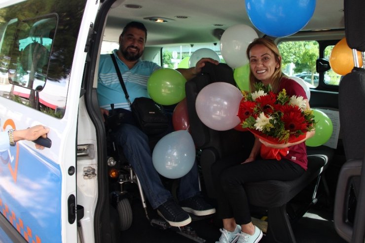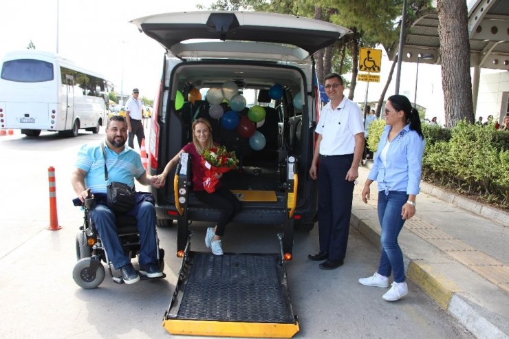 Ortopedik engelli Kadir Karacan ve eşini Büyükşehir Belediyesi personeli çiçeklerle karşıladı. Aracı görünce çok şaşırdıklarını ve mutlu olduklarını ifade eden Kadir -Seda Karacan çifti, bu güzel anıyı hiç unutmayacaklarını dile getirerek Antalya Büyükşehir Belediyesi'ne teşekkür etti. Engelsiz ulaşım aracı, genç çifte gidecekleri otele kadar eşlik etti.
