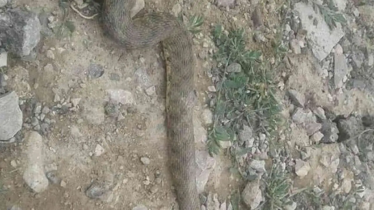 Hakkari'nin Çukurca ilçesinde 3 metrelik engerek yılanı görüntülendi.