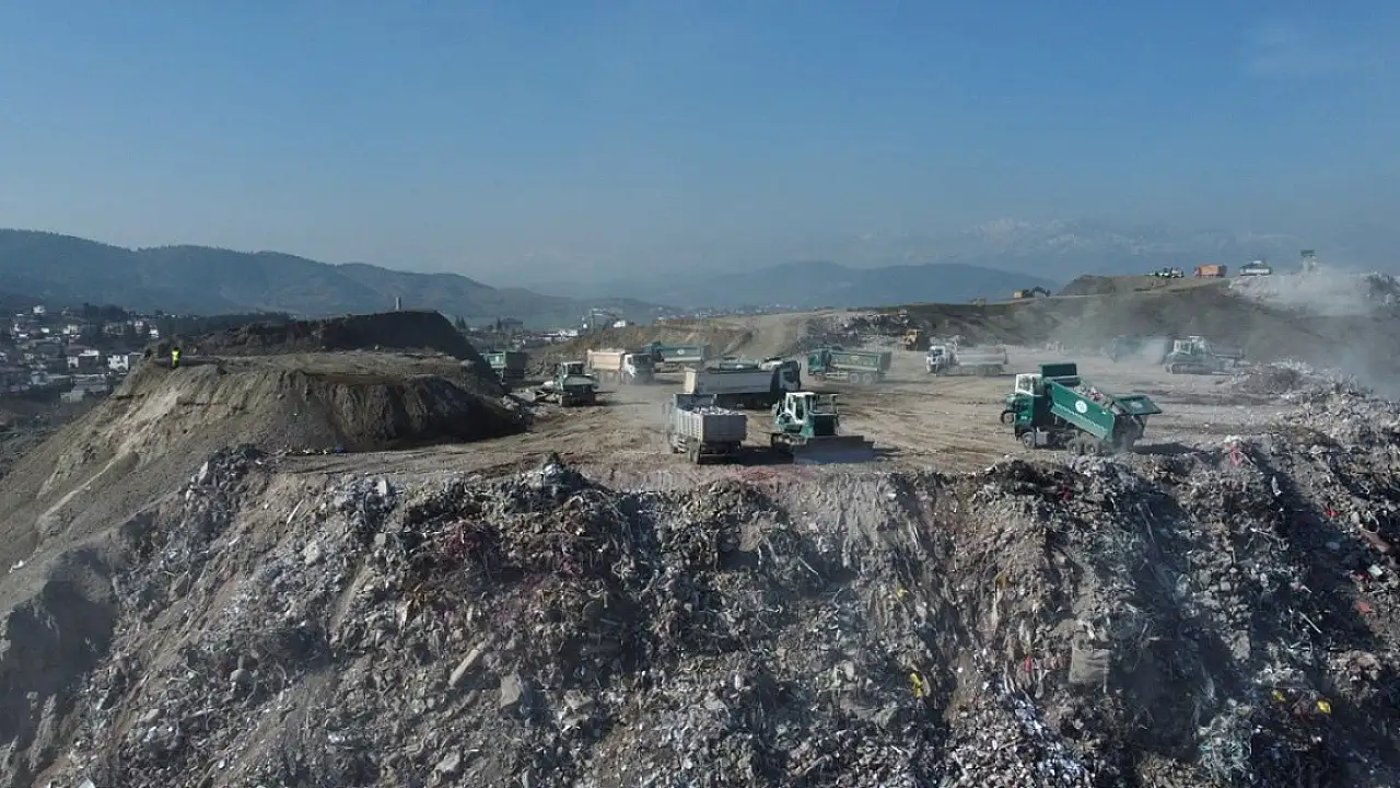 Molozların oluşturduğu enkaz birikintisi ise "dağ" gibi yükseliyor.