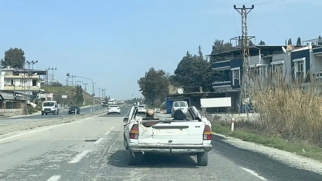 Hatay'da evleri yıkılan Ahmet Oğural, günler sonra enkaz altından çıkardığı yarım otomobili ile trafiğe çıktı. Otomobiliyle erzak almaya giden Oğural, "Tehlikeli ama yapacak bir şey yok, imkanlar böyle" dedi.