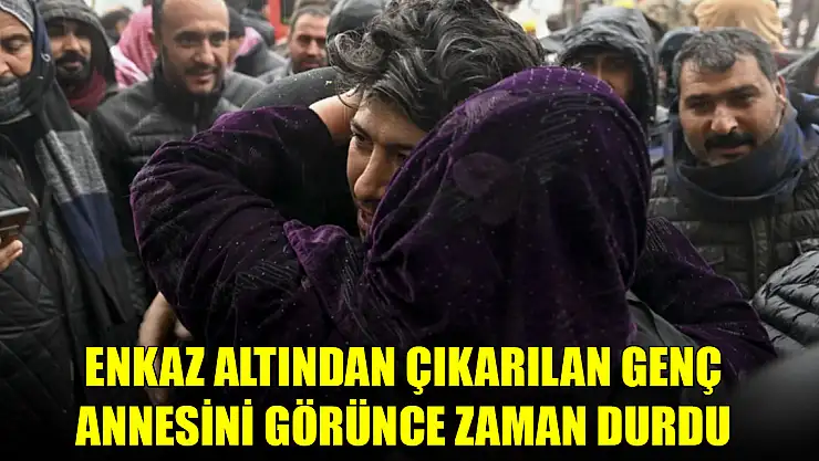 Molozların altından çıkarıldıktan sonra sedyeyle taşınan kişi, durumunun iyi olduğunu söyleyerek enkaz başında bekleyen annesiyle kucaklaştı.