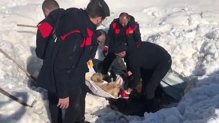 Enkazın altındaki köpek kurtarıldı