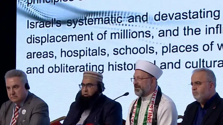 İsrail'in Gazze'ye yönelik 7 Ekim 2023'te başlayan saldırılarının sadece masum sivilleri hedef almakla kalmadığını vurgulayan Erbaş, saldırıların insanlığın ortak değerlerini ve uluslararası hukukun temel prensiplerini de yerle bir ettiğini söyledi.