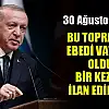 - Erdoğan: 30 Ağustos zaferiyle bu toprakların ebedi vatanımız olduğu bir kez daha ilan edilmiştir