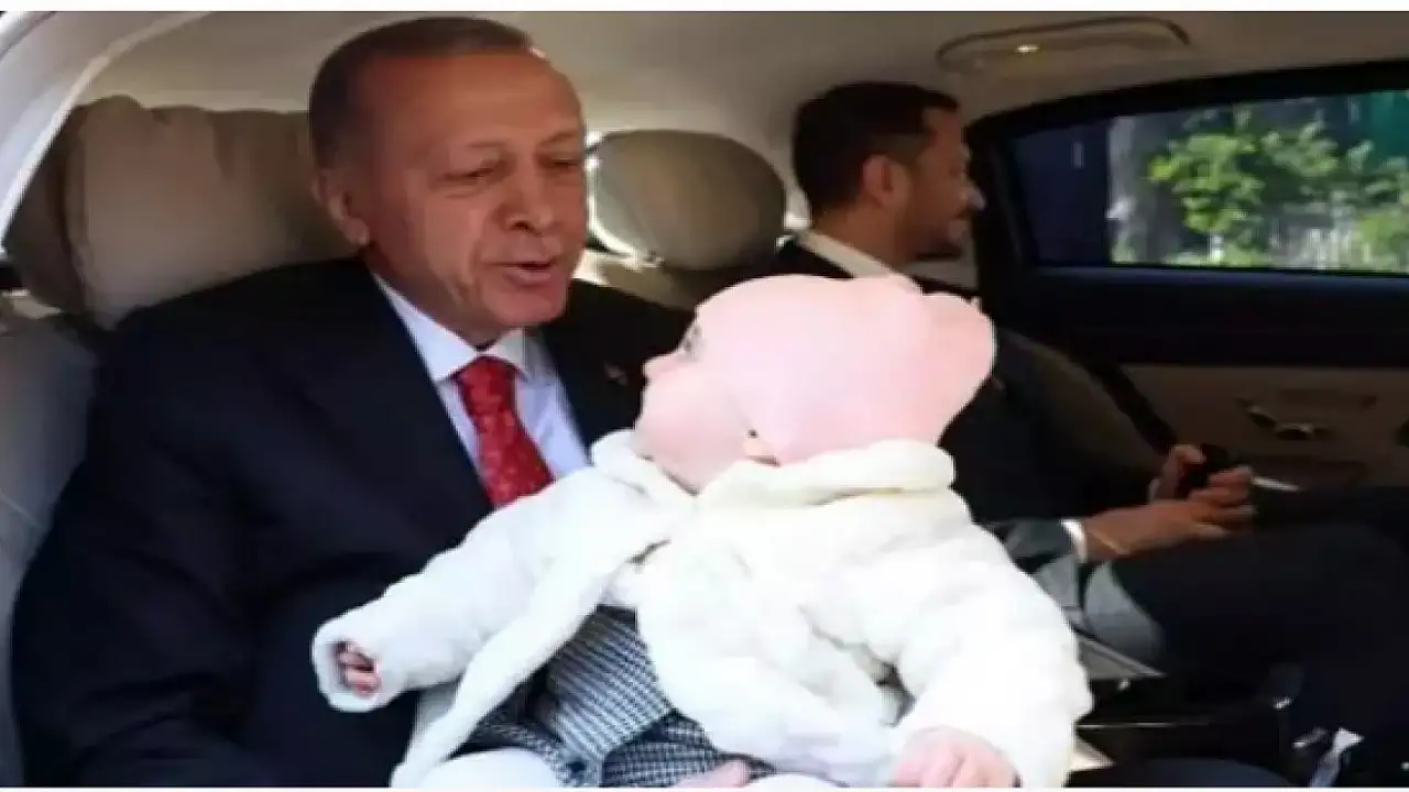 Burada, 8 aylık bir bebeği makam aracında seven Cumhurbaşkanı Erdoğan, ona oyuncak hediye etti.