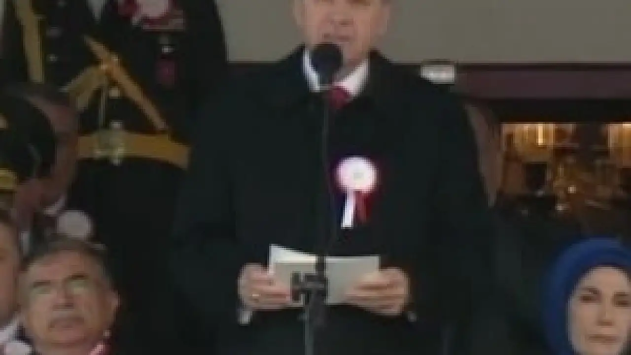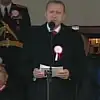 "Millet olarak gerçekten çok zor şartlarda kurduğumuz Türkiye Cumhuriyeti'ni muasır medeniyetler seviyesinin üzerine çıkarmak için 92 yıldır mücadele ediyoruz" diye konuşan Erdoğan, "Türkiye'yi bölgesinin ve dünyanın en önemli ülkelerinden, yükselen yıldızlarından biri haline getirdik. Bugün ülkemiz hamd olsun, tüm mazlumların, mağdurların ümidi haline geldi. Öte yandan birlik, beraberlik, kardeşlik içinde verdiğimiz demokrasi ve kalkınma mücadelesinden rahatsız olanlar her dönemde önümüze engeller çıkarmışlardır. Şartlar ne olursa olsun, tarihe geçen bir İstiklal mücadelesi ile kurduğumuz, Cumhuriyetle taçlandırdığımız devletimize yönelik her türlü tehdidin üstesinden gelecek güce, imkana ve kararlılığa sahibiz" ifadelerini kullandı.