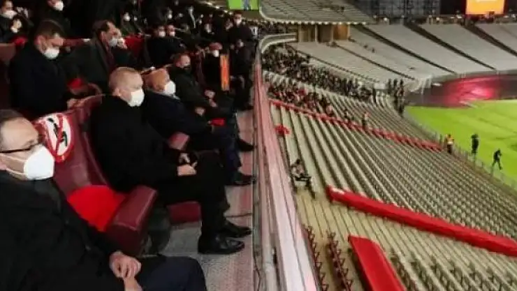 Erdoğan'ı statta, Gençlik ve Spor Bakanı Mehmet Muharrem Kasapoğlu, Sanayi ve Teknoloji Bakanı Mustafa Varank, Türkiye Futbol Federasyonu (TFF) Başkanı Nihat Özdemir, Kulüpler Birliği Vakfı ve Beşiktaş Kulübü Başkanı Ahmet Nur Çebi ile TFF Yönetim Kurulu üyeleri karşıladı.