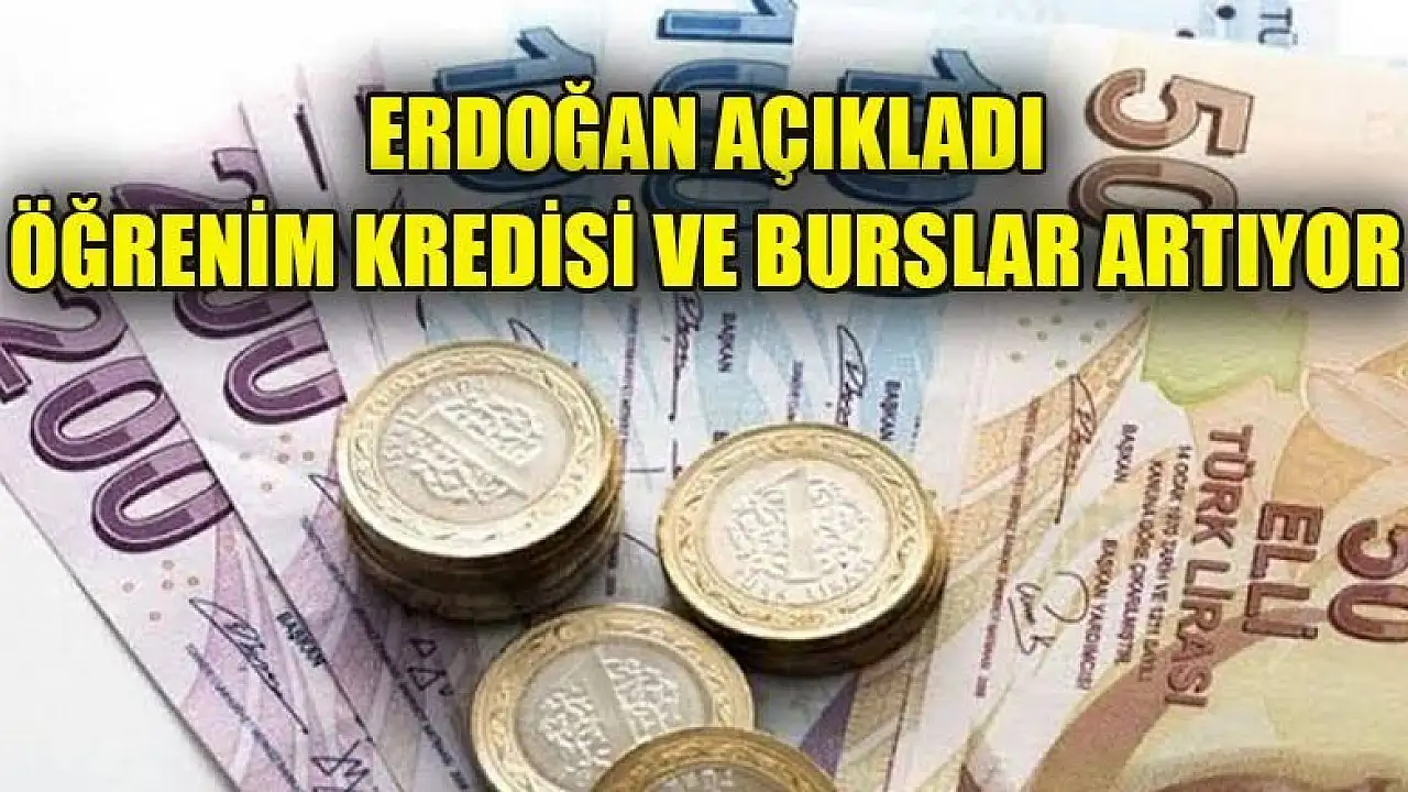 Cumhurbaşkanı Recep Tayyip Erdoğan, "2020 Ocak ayı itibariyle lisans öğrencilerimizin öğrenim kredisi veya bursu, yüzde 10 artış ile 550 liraya çıkıyor. Öğrenim kredisi rakamları Ocak ayından itibaren yüksek lisansta bin 100 lira, doktorada bin 650 lira olarak uygulanacak" dedi.