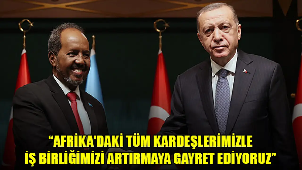 Türkiye'nin Somalililerin yanında yer almaya, uluslararası alanda Somali'nin sesi olmaya devam edeceğini vurgulayan Erdoğan, "Sayın Cumhurbaşkanı ile yaptığımız görüşmelerde Türkiye-Somali ilişkilerini ayrıntılarıyla ele aldık. Muhtelif alanlardaki iş birliğimizi artırarak sürdürme ve ilişkilerimizin ahdi zeminini tahkim etme konusunda mutabık kaldık. Somali'de hükumetin kurulmasının ardından bu konuda hızla gerekli adımları atma hususunda fikir birliğine vardık. İkili ticaret hacmimiz geçen sene yüzde 31 artarak 363 milyon dolara ulaştı. Bu noktalara 2003 yılının 2 milyon dolarlık seviyelerinden geldiğimiz de akılda bulundurulmalıdır. Görüşmelerimizde ayrıca bölgesel meseleleri de ele alarak Somali'nin istikrar ve güvenliğinin önemine vurgu yaptık. Bugüne kadar 5 bin Somalili askerin eğitimini tamamladık. Ayrıca 1000 özel harekat polisine eğitim verdik. Türkiye olarak Somali'nin istikrar ve güvenliğine, terörle mücadelesine katkılarımızı sürdürme kararlılığımızı bu vesileyle buradan tekrarlıyorum. Somali, ülkemizin Afrika Kıtası'nın ekonomik kalkınmasına, sosyal barış ve istikrarına verdiği önemi gösteren temel örnektir. Türkiye olarak kazan-kazan ve eşit ortaklık temelinde Afrika'daki tüm kardeşlerimizle iş birliğimizi artırmaya gayret ediyoruz. Kıta ile ilişkilerimizi geliştirerek sürdürme noktasında kararlıyız" ifadelerini kullandı.