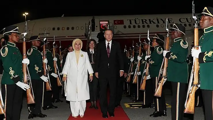 Erdogan, who arrived at 9.55 p.m. local time (1955 GMT), was welcomed by South African Trade and Industry Minister Rob Davies and Turkey's Ambassador to South Africa Elif Comoglu Ulgen at the OR Tambo International Airport.
