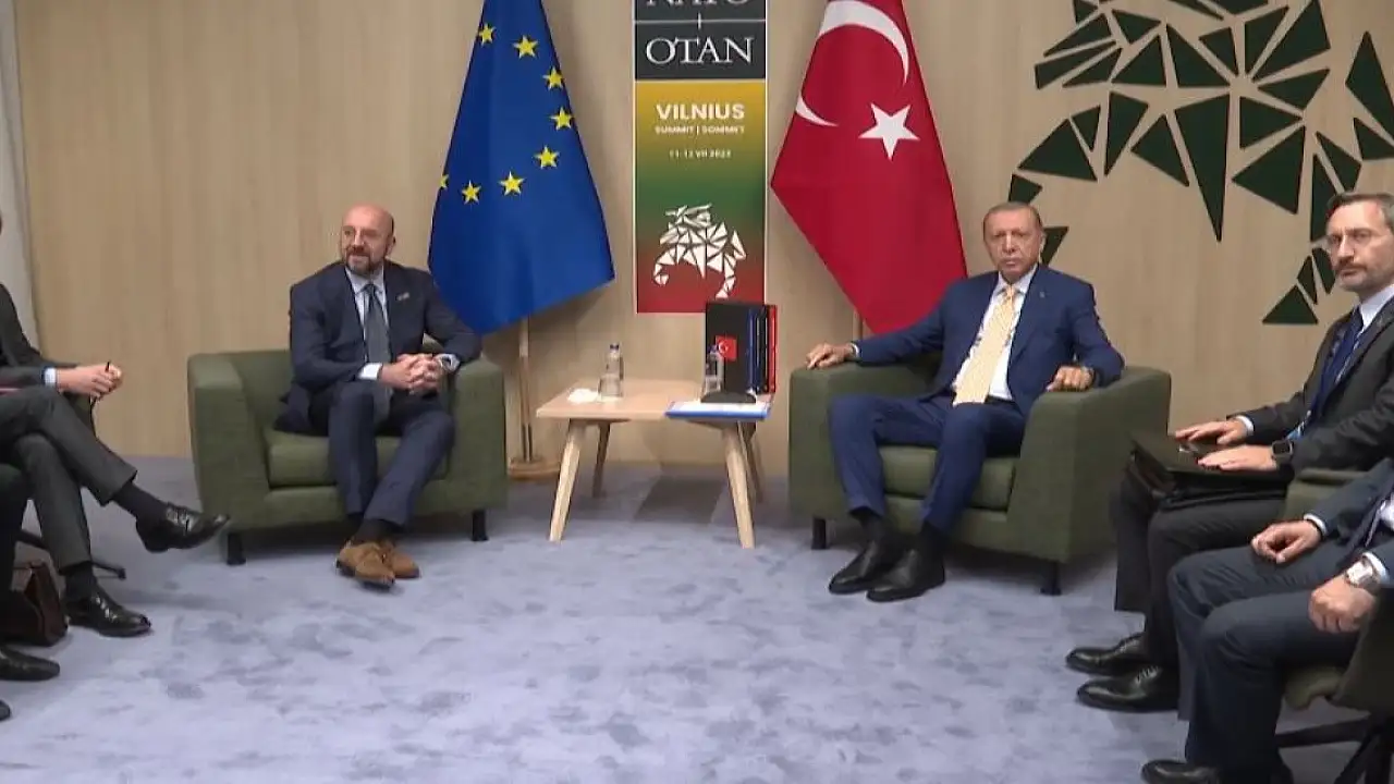 Cumhurbaşkanı Recep Tayyip Erdoğan, NATO Liderler Zirvesi'ne katılmak üzere gittiği Litvanya'nın başkenti Vilnius'ta Avrupa Konseyi Başkanı Charles Michel ile bir araya geldi.