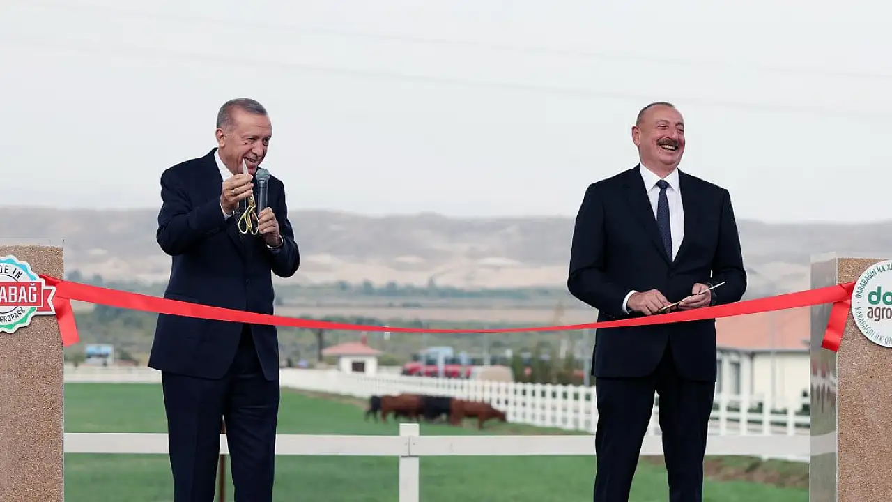 Cumhurbaşkanı Recep Tayyip Erdoğan ile Azerbaycan Cumhurbaşkanı İlham Aliyev, Dost Agropark Zengilan Akıllı Tarım Köyü Projesi İlk Etabı'nı açtı.