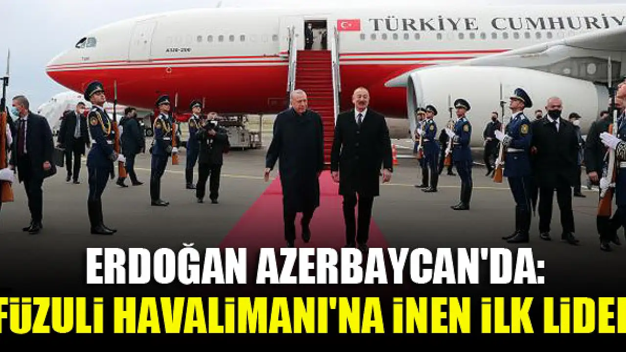 Cumhurbaşkanı Recep Tayyip Erdoğan, özel uçak 'TUR' ile Azerbaycan'a geldi. Erdoğan, Füzuli Uluslararası Havalimanı'na inen ilk lider oldu.