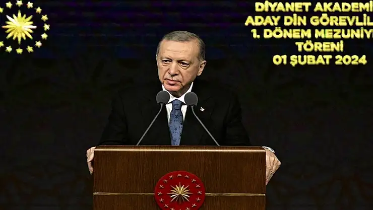 Cumhurbaşkanı Recep Tayyip Erdoğan, Beştepe Millet Kongre ve Kültür Merkezi'nde gerçekleştirilen Diyanet Akademisi Başkanlığı Aday Din Görevlileri Mezuniyet Merasimi'nde konuştu. Diyanet Akademisi Başkanlığı 1. Dönem aday din görevlileri mezuniyeti dolayısıyla konukları Cumhurbaşkanlığı Külliyesi'nde ağırlamaktan mutluluk duyduğunu belirten Cumhurbaşkanı Erdoğan, "Böylesine güzel bir atmosferde, böyle anlamlı bir program münasebetiyle gönüllerimizi kavuşturan Rabbime hamd ediyorum. Diyanet İşleri Başkanımıza ve Diyanet yönetimine de bu güzel buluşma için ayrıca teşekkür ediyorum. Bugün Diyanet teşkilatımız ve din görevlilerimizin mesleki eğitimi adına gerçekten önemli bir merasim yapıyoruz. Aslında uzun yıllara sâri bir emeğin ve projenin meyvesini almanın mutluluğunu hep birlikte yaşıyoruz" dedi.