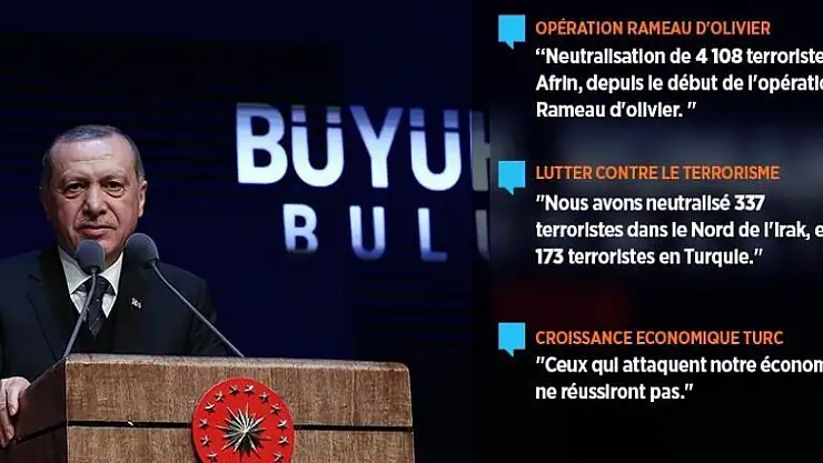Le président a aussi annoncé la neutralisation de 4 108 terroristes à Afrin, dans le Nord-ouest de la Syrie, depuis le début de l'opération Rameau d'olivier (20 janvier).