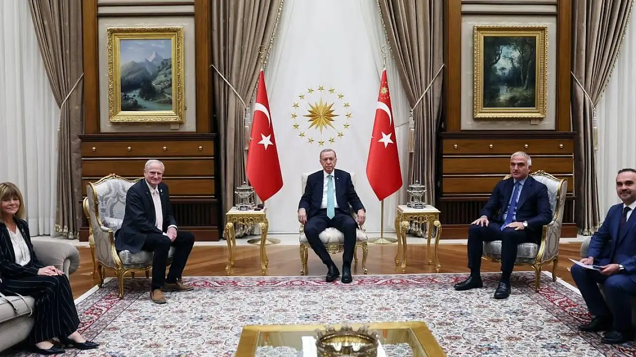 İletişim Başkanlığı'ndan yapılan açıklamaya göre, Cumhurbaşkanı Recep Tayyip Erdoğan, Uluslararası Uzay Federasyonu Genel Sekreteri Christian Feichtinger'i Cumhurbaşkanlığı Külliyesi’nde kabul etti.