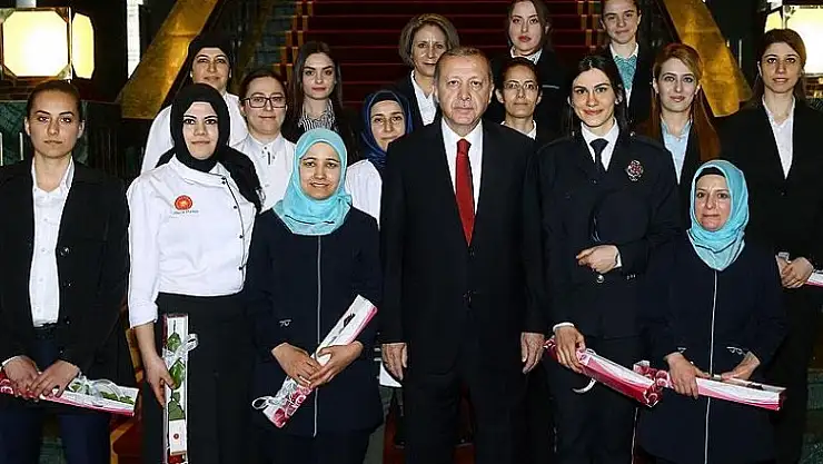 Cumhurbaşkanı Recep Tayyip Erdoğan, Cumhurbaşkanlığı Külliyesi'ndeki kadın personelin Dünya Kadınlar Günü'nü kutladı.