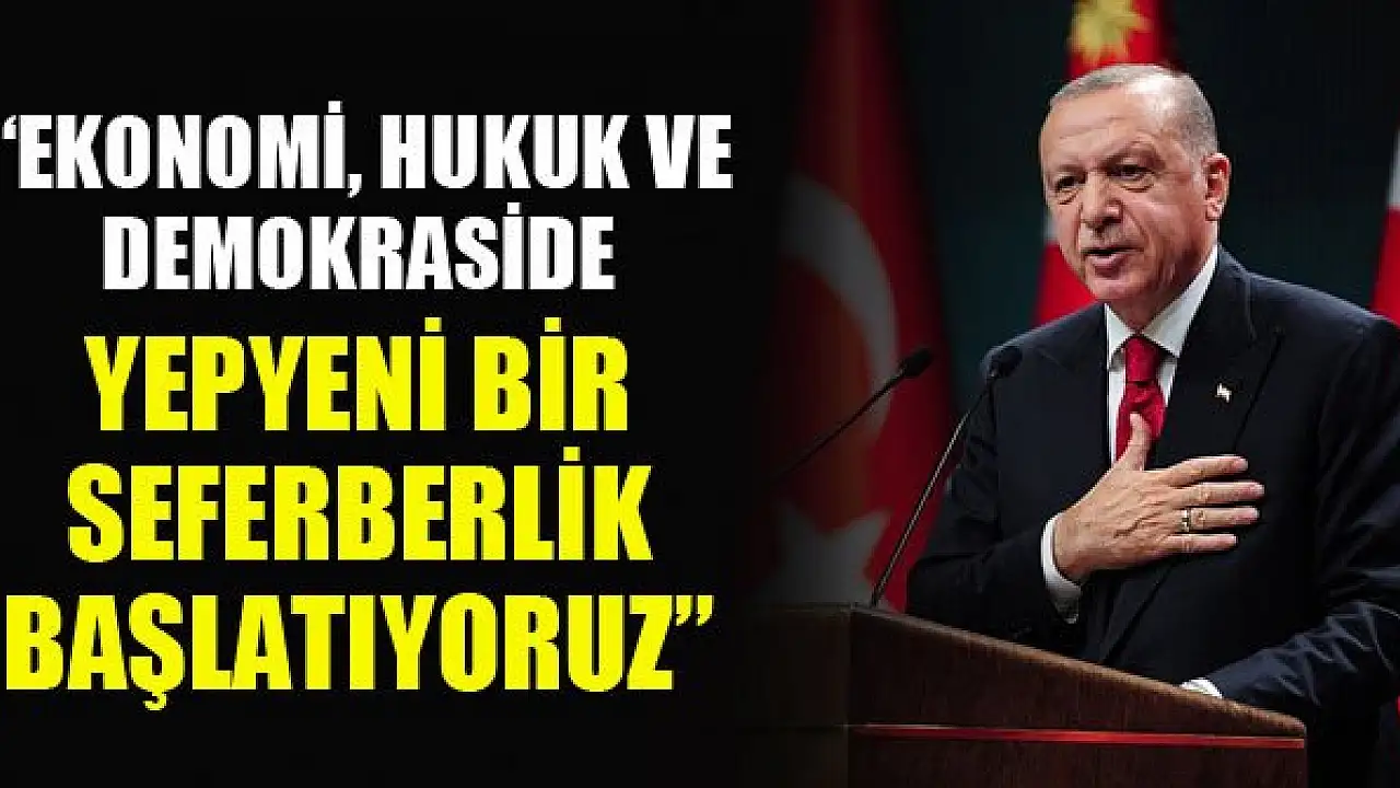 Erdoğan, "Ekonomi, hukuk ve demokraside yepyeni bir seferberlik başlatıyoruz." ifadelerini kullandı.